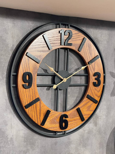 ساعت دیواری چوب و فلز