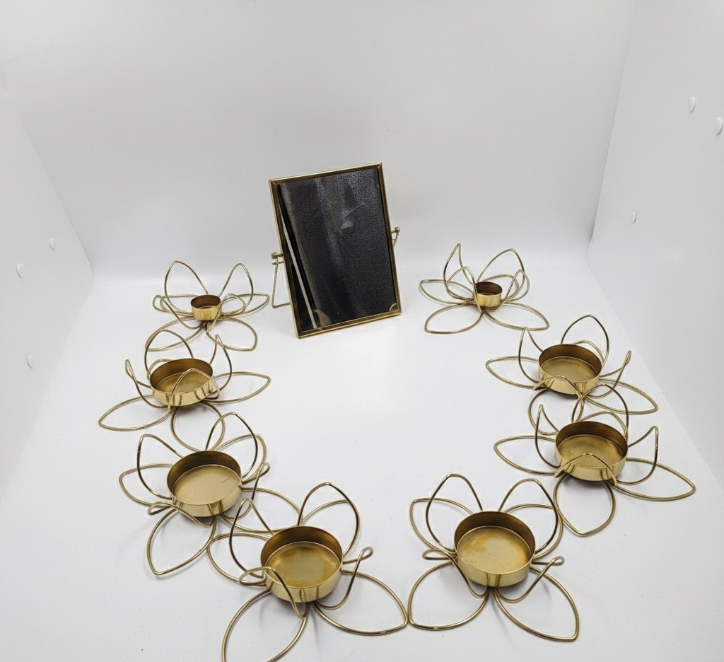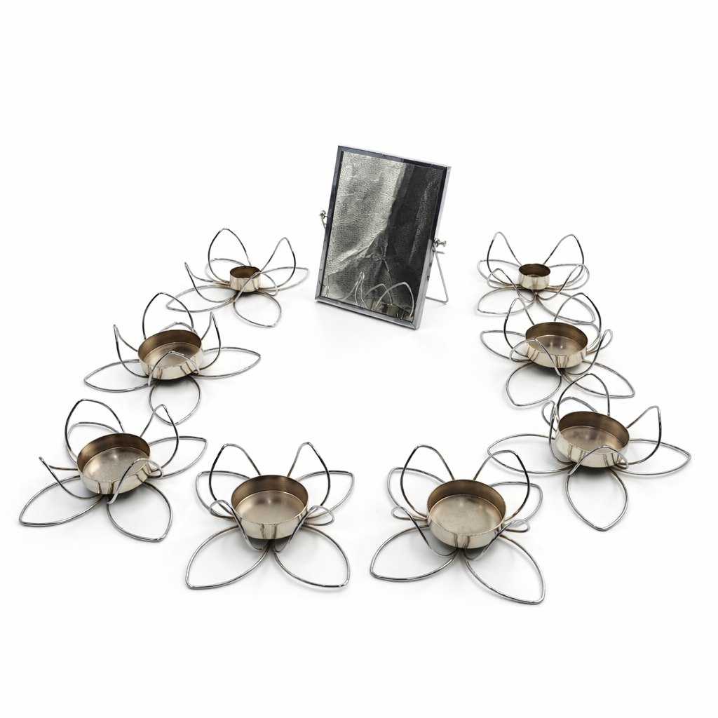 دو عدد جا شمعی شش عدد ظرف و آینه