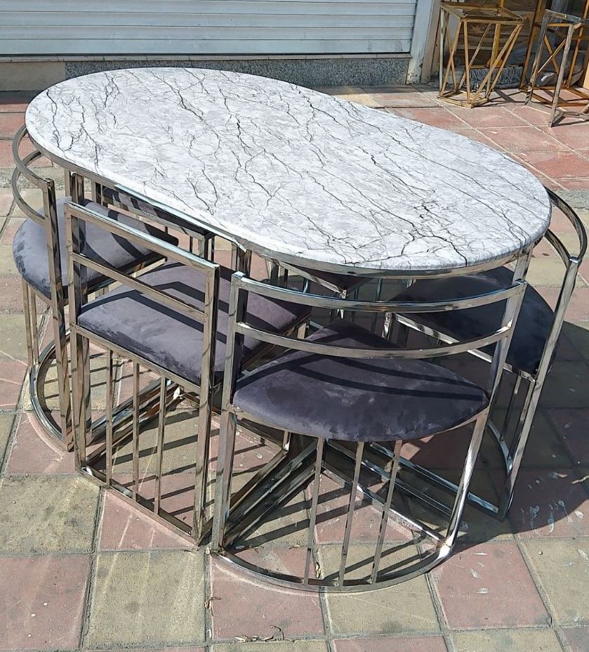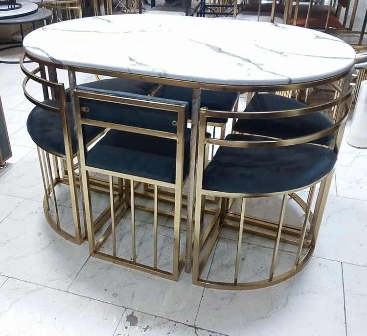 میز ناهارخوری فلزی ۶ نفره طرح خطی
