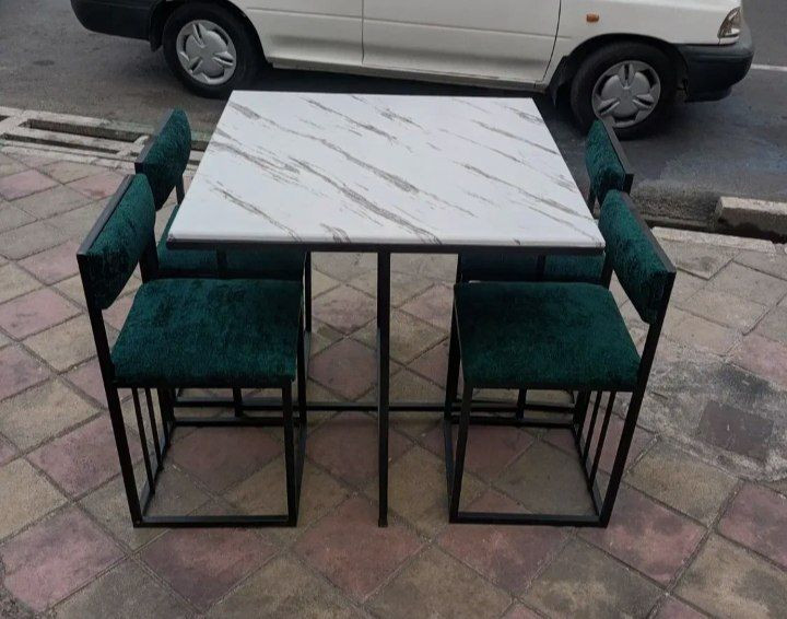 میز ناهارخوری فلزی ۴ نفره طرح خطی